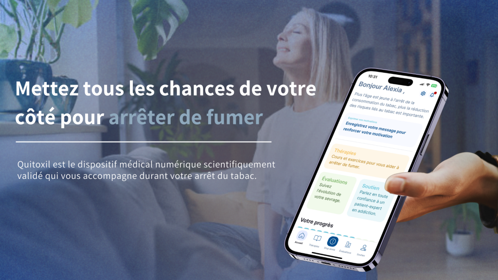 Quitoxil est le dispositif médical numérique scientifiquement validé qui vous accompagne durant votre arrêt du tabac.